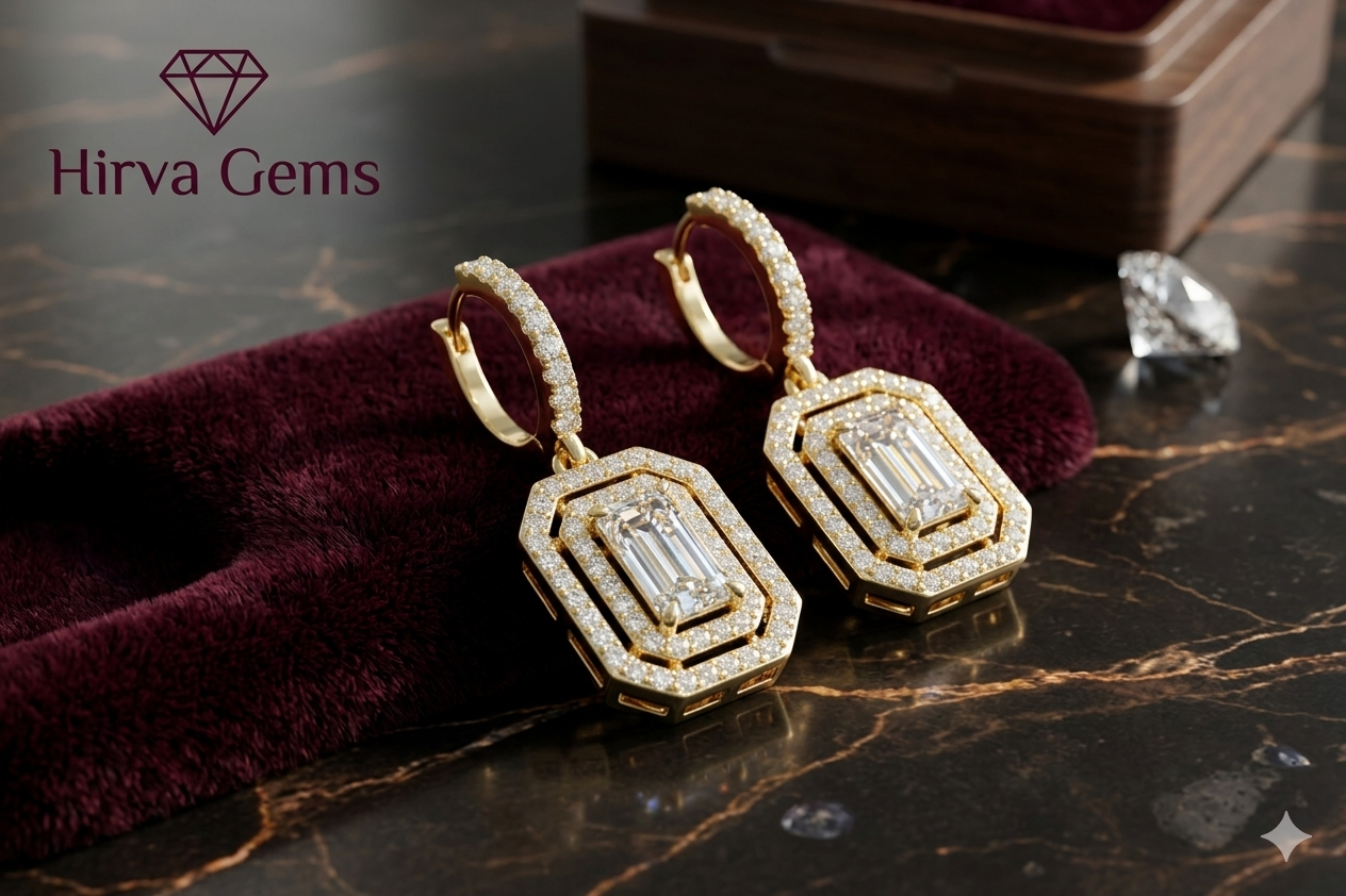 From the geometric precision of the baguette settings to the ethereal fire of lab grown halo earrings, from the warmth of yellow gold to the cool elegance of white gold and the romantic blush of rose gold — every choice you make at Hirvagems is a choice for quality, beauty, and conscience. These are not just wedding earrings; they are heirlooms in the making. And with fast delivery, safe packaging, and all credit and debit cards accepted, getting them has never been easier.