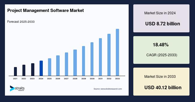 The global project management software market size was valued at USD 8.72 billion in 2024.