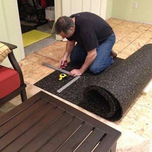 Installing rolled rubber flooring